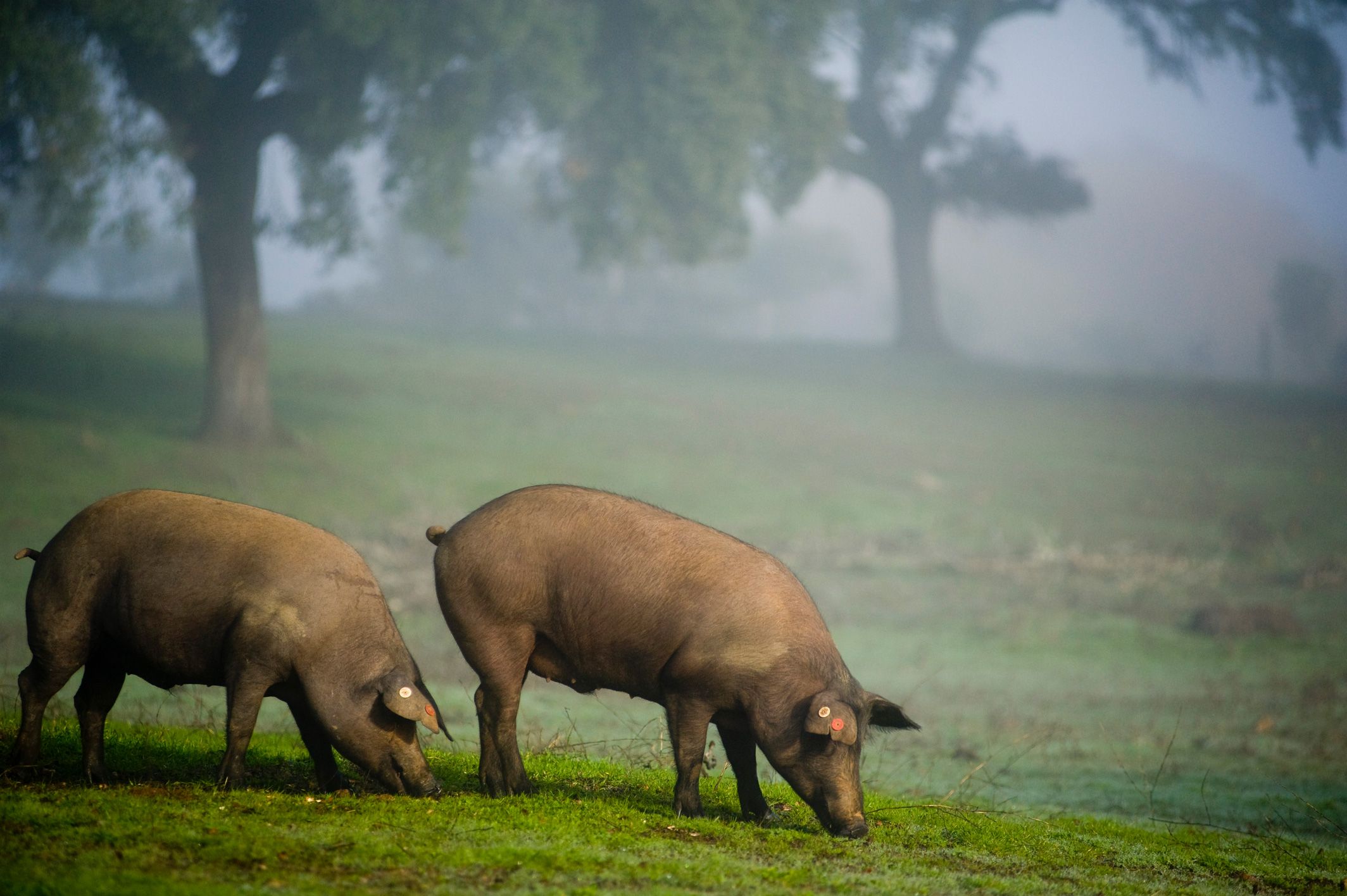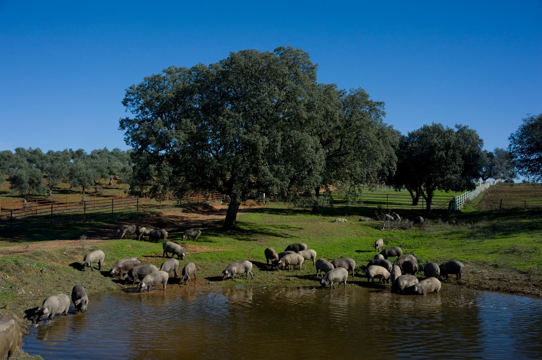 En el municipio de Valverde del Fresno, en la comarca cacereña de Sierra de Gata, se encuentra nuestra finca ganadera Cigüeña Negra, un remoto paraíso de más de 220 hectáreas de olivos y encinas apenas alterado a lo largo de siglos. Entre las lomas, y siguiendo los ritmos naturales, crece nuestro ganado vacuno y porcino, pastan las ovejas en simbiosis con el olivar y maduran los frutos con los que producimos aromáticos aceites de oliva virgen extra ecológico. Un paisaje sostenible que perdura y alimenta.